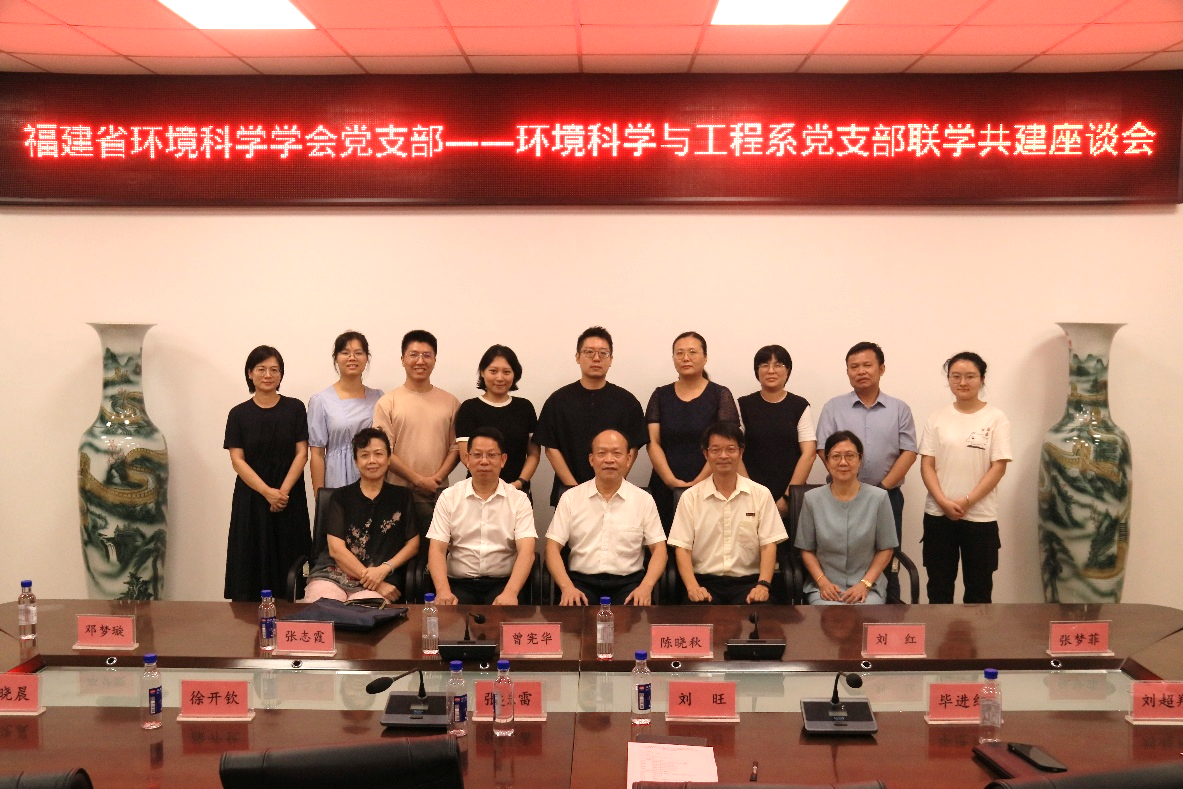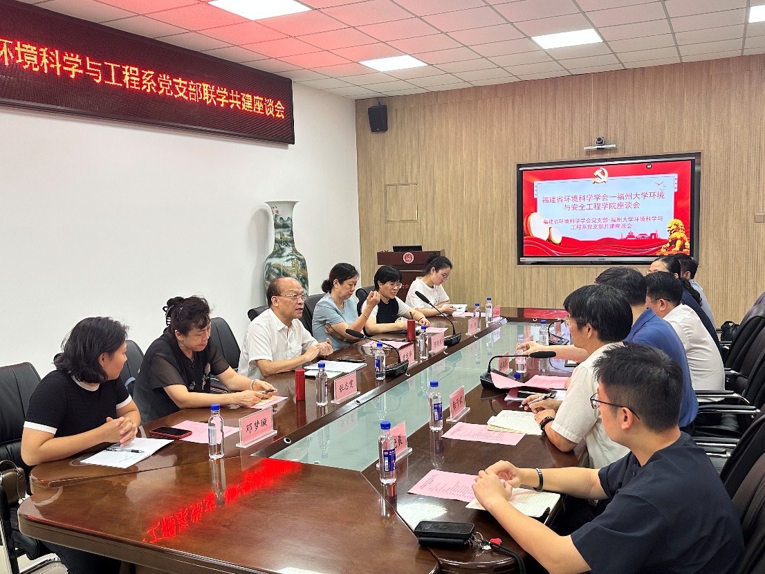 为深入贯彻落实新时代党的建设总要求,以高质量党建引领事业高质量发展,9月23日下午,福建省环境科学学会党支部书记曾宪华率领支部委员及专家一行六人,赴福州大学环境与安全工程学院,与环境科学与工程系党支部开展联学共建交流活动。此次座谈旨在通过支部共建平台,探索党建引领下学术科研、人才培养与社会服务深度融合的新路径。