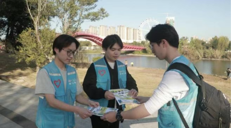 最具专业温度与意义的环节,当属向路人传递绿色力量的瞬间!穿上志愿马甲的资环学子们,化身专业的“环保传播使者”,带着精心准备的保护海报与种子纸走向市民。海报上,结合专业知识梳理的闽江垃圾污染危害、治理成果及环保材料应用要点清晰明了;种子纸里藏着“播种绿色、循环共生”的巧思,浇水便能生根发芽,恰如资源循环的环保理念,生生不息。“践行资源循环,守护闽江清水!”、“垃圾分类减量,助力双碳目标!”学子们结合专业所学,用通俗易懂的语言向市民讲解环保知识,一句句真诚的口号搭配专业的答疑,让“随手捡垃圾、拒绝乱排放”的环保行为与资源循环的专业理念深入人心,不少游客主动驻足交流,加入打卡队伍,在互动中筑牢生态责任意识。