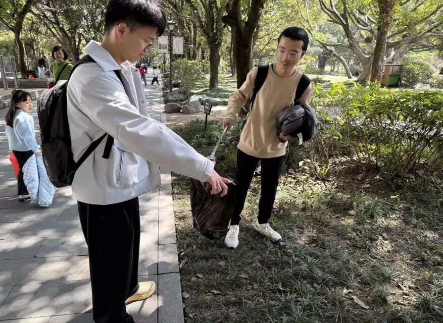 活动当日,尽管春寒尚未消退,但同学们的热情丝毫未减。上午10时许,经过简短的动员与任务分配,大家迅速投身于紧张热烈的劳动之中。从公园主干道到林间小道,从湖畔栈道到休憩凉亭,处处可见志愿者忙碌的身影。大家分工协作,干劲十足:清扫路面落叶与杂物,不放过任何一处卫生死角;手持垃圾夹,认真清理绿化带、草坪中的烟头、纸屑、塑料瓶等隐蔽垃圾;还有同学专门负责擦拭公共座椅、垃圾桶和标识牌,使公共设施焕然一新。经过一个多小时的辛勤劳作,公园环境变得更为整洁美观,同学们的辛勤付出也赢得了过往游客的一致赞誉。