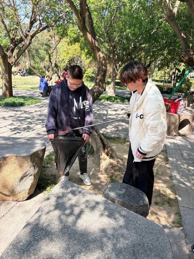 “垃圾分类”微课堂走进公园:清扫过程中,同学们不仅捡拾垃圾,还化身“垃圾分类宣讲员”。他们在公园人流集中区域,利用休息时间,向游客尤其是小朋友讲解垃圾分类的知识与技巧。通过现场演示如何将捡拾到的矿泉水瓶、废弃纸张、电池等物品进行正确分类,让环保理念在互动中深入人心。
