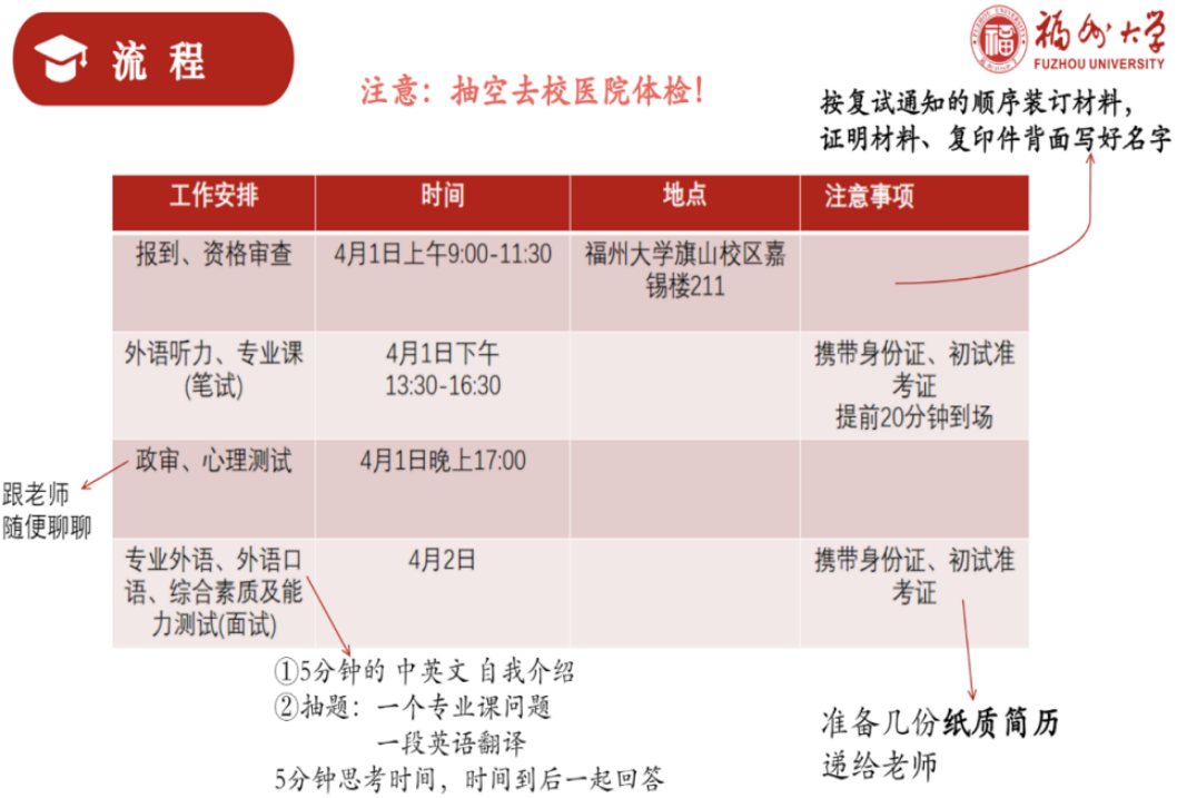 笔试:复盘初试核心内容,吃透目标院校历年复试真题,摸清出题风格,福州大学部分专业笔试含英语听力,考前针对性练习即可;