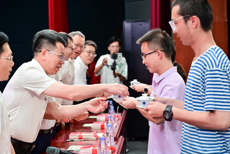 随后,学院领导为新生代表佩戴校徽、赠送书籍,象征着新生正式融入福大环安大家庭,开启求学新征程。