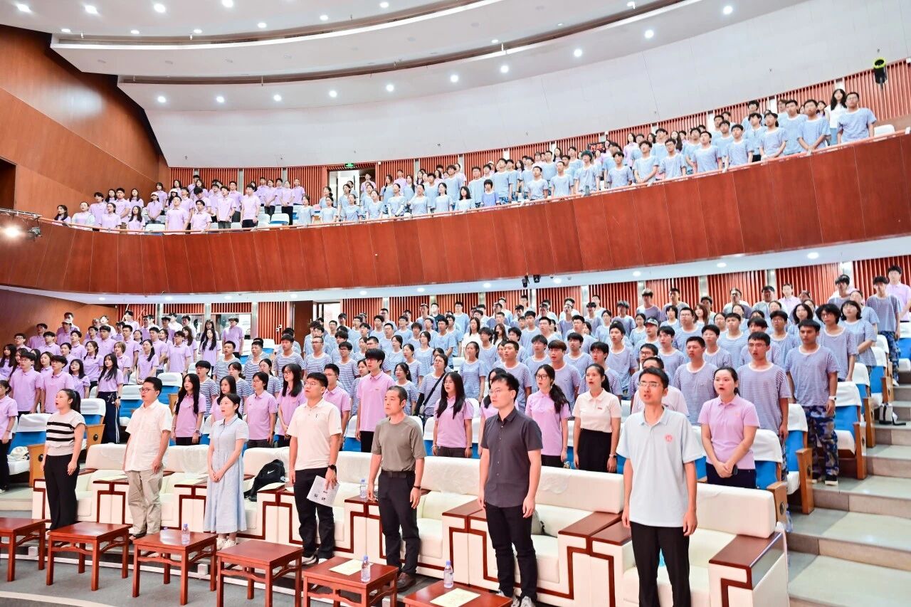 典礼最后,全体 2025 级新生在新生代表曾德旺的带领下庄严宣誓:“铭记明德至诚,修身立信,传承艰苦奋斗的创业精神;秉持博学远志,严谨求真,发扬求实创新的治学精种;勇于担当奉献,知行合一,践行拼搏进取的奉献精神......”