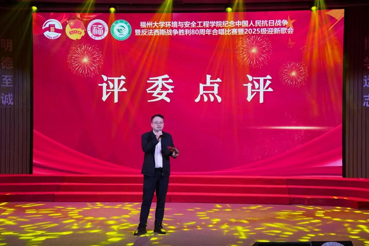 2025年10月25日晚,福州大学环境与安全工程学院于福州大学图书馆博学厅隆重举行2025年“环韵新声歌盛世,安澜壮志忆峥嵘”纪念中国人民抗日战争暨世界反法西斯战争胜利八十周年合唱比赛暨2025级迎新歌会。