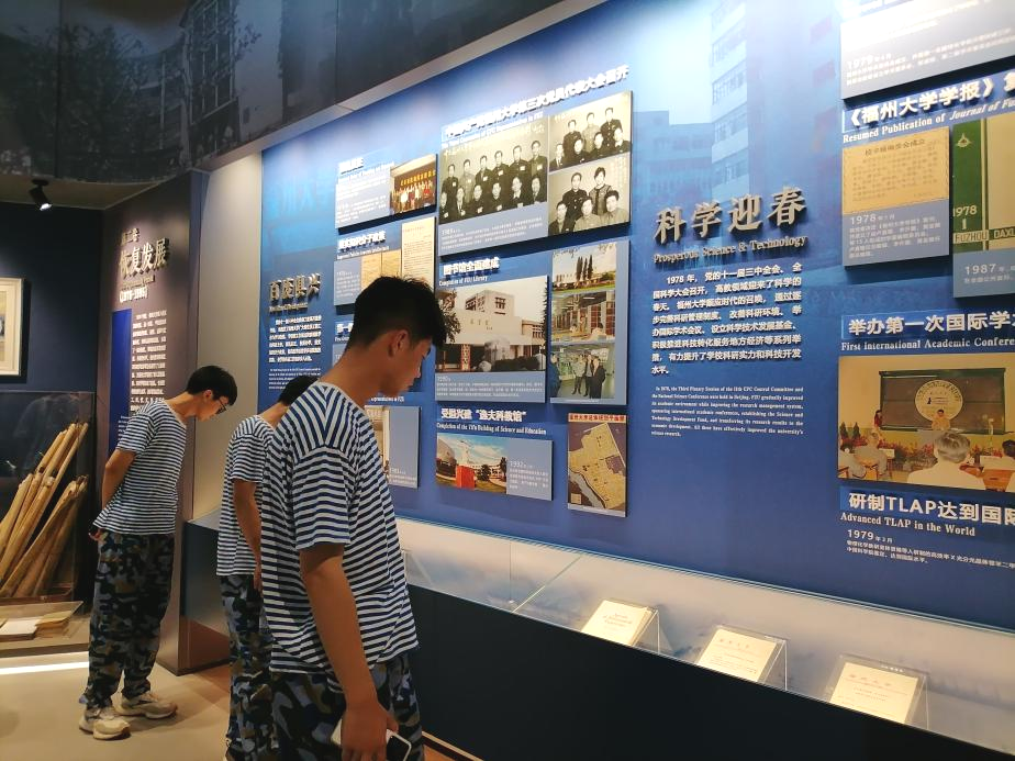 讲解员沿途为同学们做了详实的说明,不仅介绍了学校在学科建设、人才培养、科学研究等方面取得的卓越成就,更深情讲述了诸多前辈先贤和优秀校友的动人故事,将福州大学“三种精神”的内核娓娓道来——以张孤梅同志为代表的艰苦奋斗的创业精神、以卢嘉锡先生为代表的严谨求实的治学精神、以魏可镁院士为代表的勇于拼搏的奉献精神。“三种精神”涵养了福大的一步步发展,同时也融进了一代代福大人的血脉灵魂。