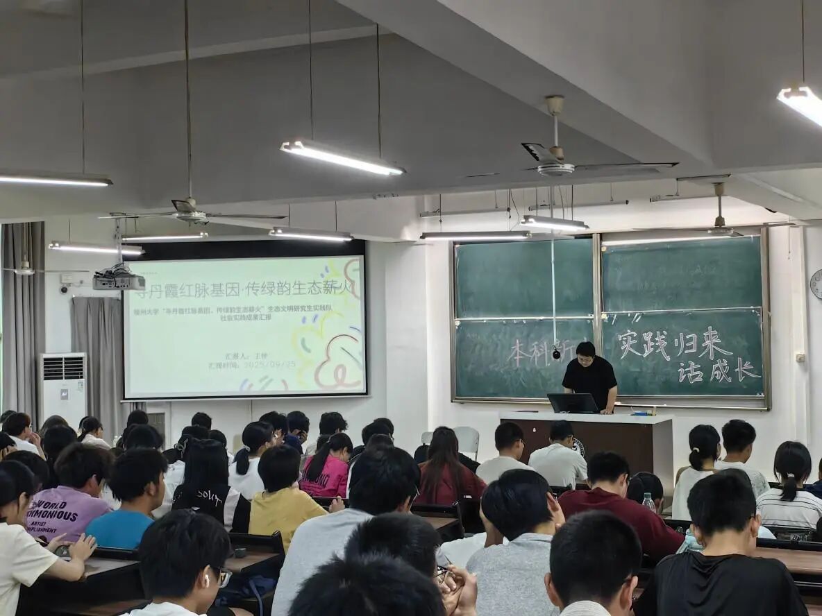 2025年9月25日,福州大学环境与安全工程学院“实践归来话成长”主题宣讲活动在铜盘校区B112举行。本次宣讲活动聚集了多位亲身参与社会实践的同学,分享他们在乡村振兴、生态治理一线的见闻与成长。这不仅是一场成果展示,更是一次关于青春的对话。