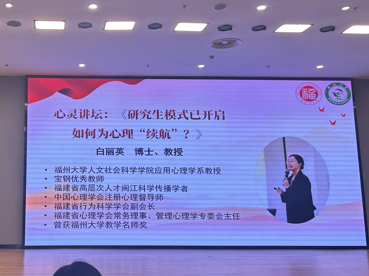 9月19日下午,白丽英教授在晋江楼一楼通过线上教育平台带来了一场主题为“研究生模式已开启,如何为心理‘续航’”的精彩讲座,为刚刚步入研究生阶段的同学们提供了宝贵的心理指导。
