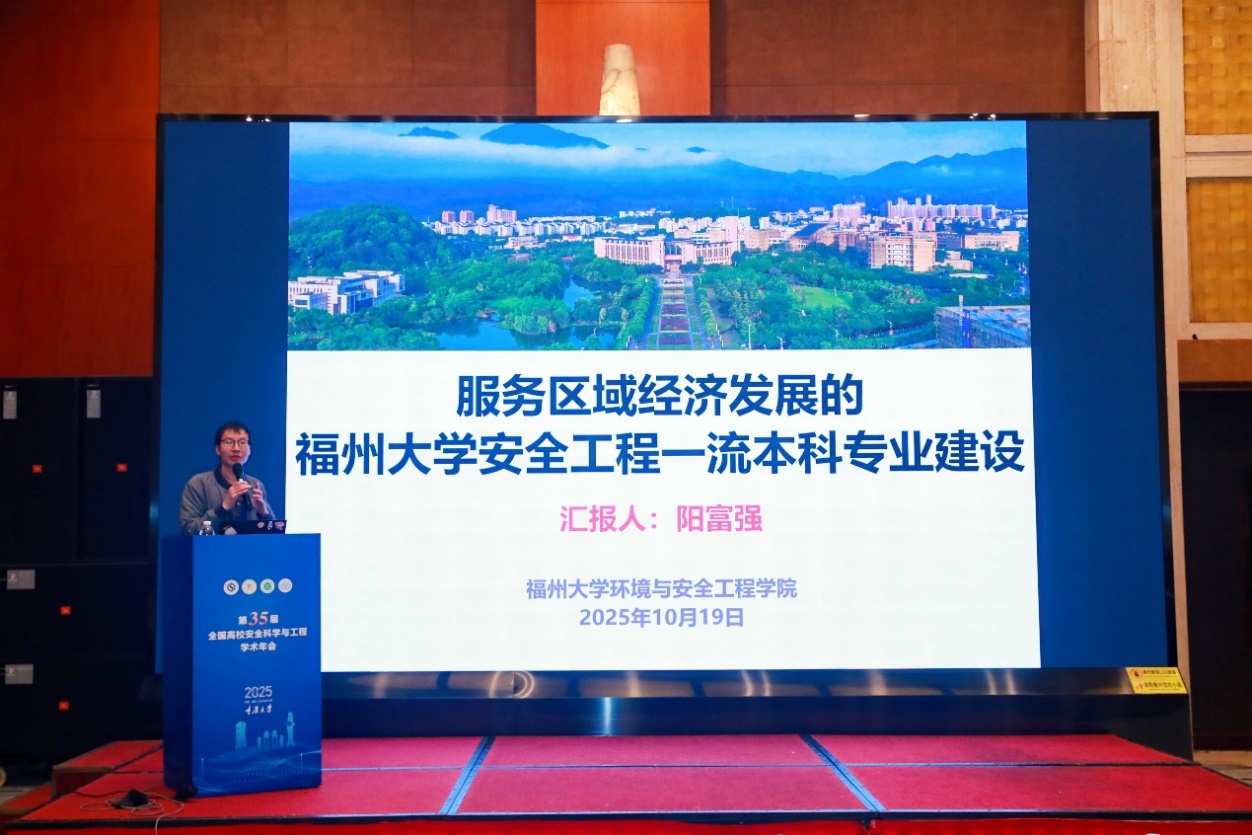 在专题研讨环节,阳富强副院长主持研讨会,并应邀作题为《服务区域经济发展的福州大学安全工程一流本科专业建设》的大会报告。报告系统介绍了我校安全工程专业在对接区域战略需求、优化人才培养机制、深化产教融合等方面的探索实践,展示了我院在一流专业建设方面的特色成果,引发与会专家的热烈讨论与积极反响。