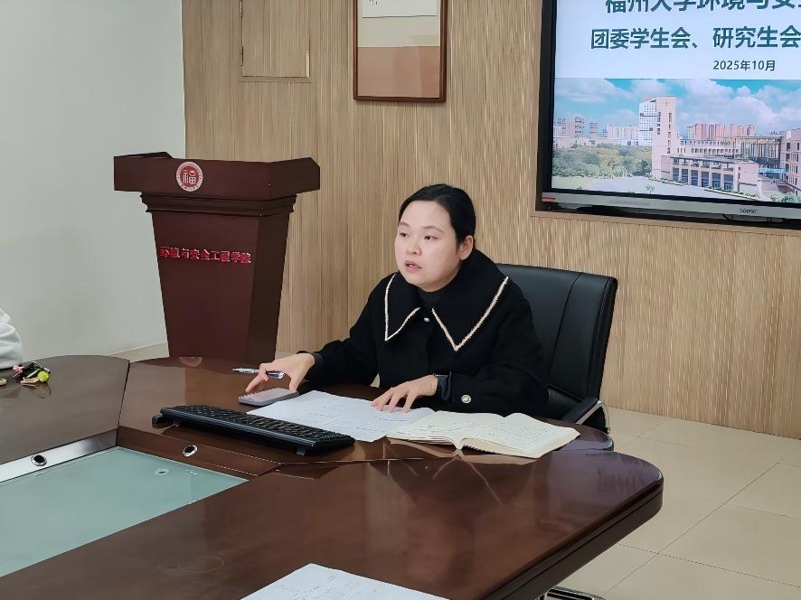 为强化本研主席团的统筹协调能力与服务担当意识,夯实学院学生组织工作根基,环境与安全工程学院于2025年10月30日举办以“凝心聚力担使命,环安领航启新程”为主题的本研主席团培训会,由学院团委副书记廖烨檬老师主讲,本研主席团成员及团委学生会部门核心负责人参与。
