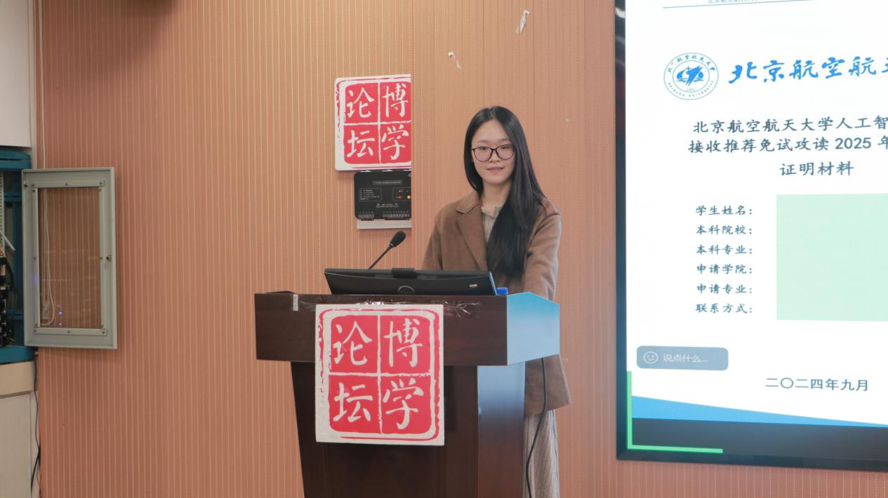 梁可欣学姐有着丰富的科研与学生工作经历,此次交流会带来了极具针对性的保研分享。她结合自身经历,为大家介绍了我校交叉领域人才培养项目,从项目要求、接收名额到核心优势逐一说明,为有意向的同学提供了切实可行的参考建议。在面试准备方面,学姐强调了个人简历的重要性,同时分享了自我介绍PPT的打磨技巧。除此之外,学姐提醒大家要熟练掌握科研成果,以便面试时能够逻辑清晰、从容应对相关提问。最后,学姐还梳理了保研核心竞争力的提升方向,让各位同学清晰规划自己之后的学习之路。