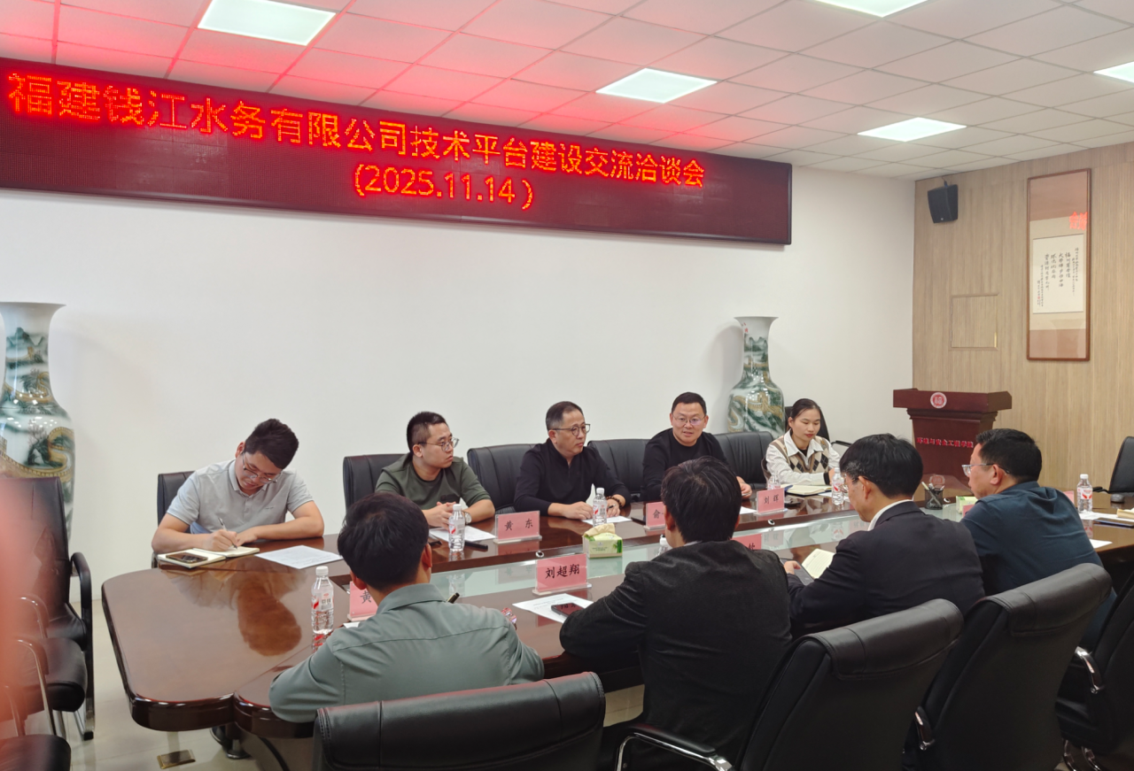 2025年11月14日,福州大学环境与安全工程学院与福建钱江水务有限公司产学研平台共建会议在福州大学旗山校区成功召开。双方围绕“校企共建技术验证基地”及产学研深度合作展开探讨,旨在整合高校科研资源与企业产业优势,共同促进水务环保领域的技术创新、成果转化与产业化发展。