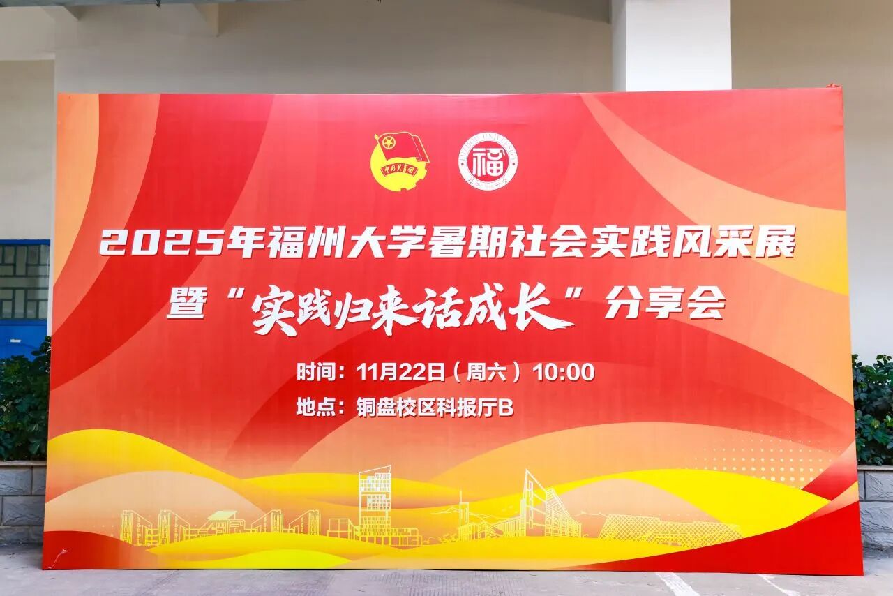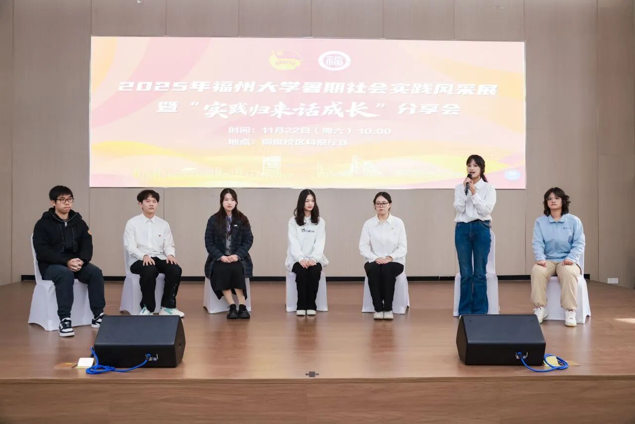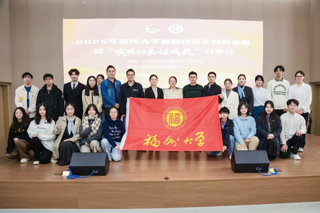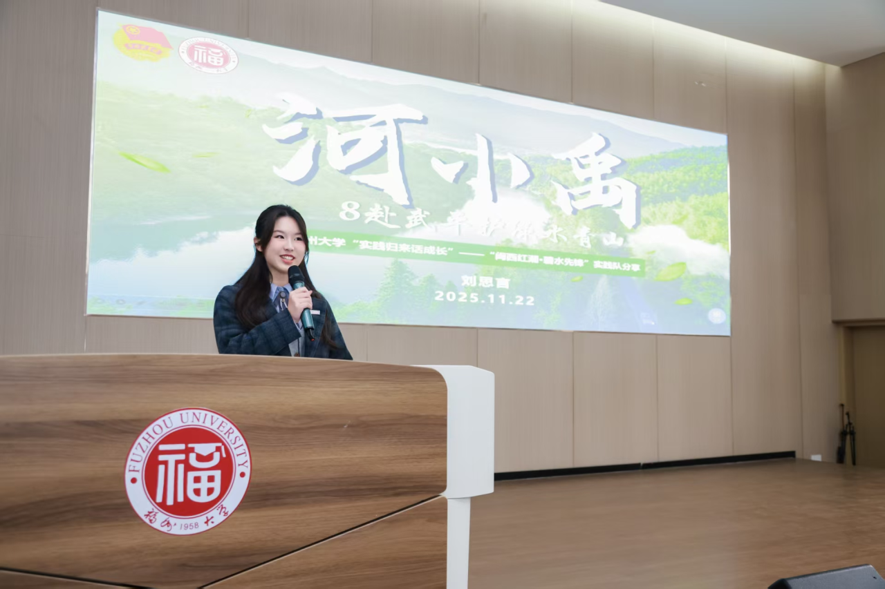 2025年11月22日上午,福州大学暑期社会实践风采展暨“实践归来话成长”分享会在铜盘校区科报厅B顺利举行。我院“闽西红潮·碧水先锋”实践队作为校级示范实践队代表登台分享,分享了一段跨越九年的“河小禹”守护故事和成长历程,展现了环安学子扎根大地、服务社会的青春担当。
