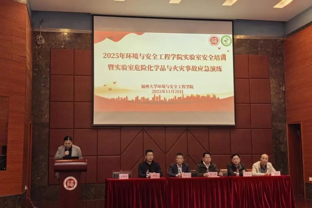 为深入贯彻落实教育部《高等学校实验室安全规范》及福州大学实验室安全管理相关要求,切实提升师生应对实验室突发事件的应急处置与自救互救能力,11月20日下午,福州大学环境与安全工程学院在嘉锡厅隆重举办“2025年环境与安全工程学院实验室安全培训暨实验室危险化学品与火灾事故应急演练”。培训及演练活动由毕进红副院长主持,特邀福州大学保卫部指派教官林鸿芬工程师担任专项培训指导,福州大学实验室建设与设备管理处李立光处长、杨龙副处长、环安学院党委刘旺书记、刘朝晖副书记、院长助理邹亚锋、保卫部吴登雷科长出席本次活动,学院全体教师、2025级硕博新生全程参与。
