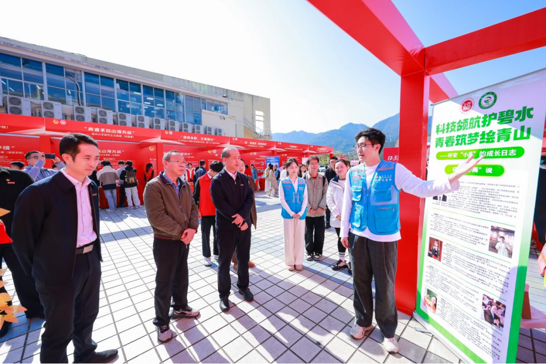 活动期间,校领导莅临视察指导,认真聆听我院讲解员徐浩翔关于“河小禹”志愿服务的分享,对团队成效给予高度肯定,寄予殷切期待,还主动参与垃圾分类游戏,亲身践行环保理念,为志愿行动点赞赋能。