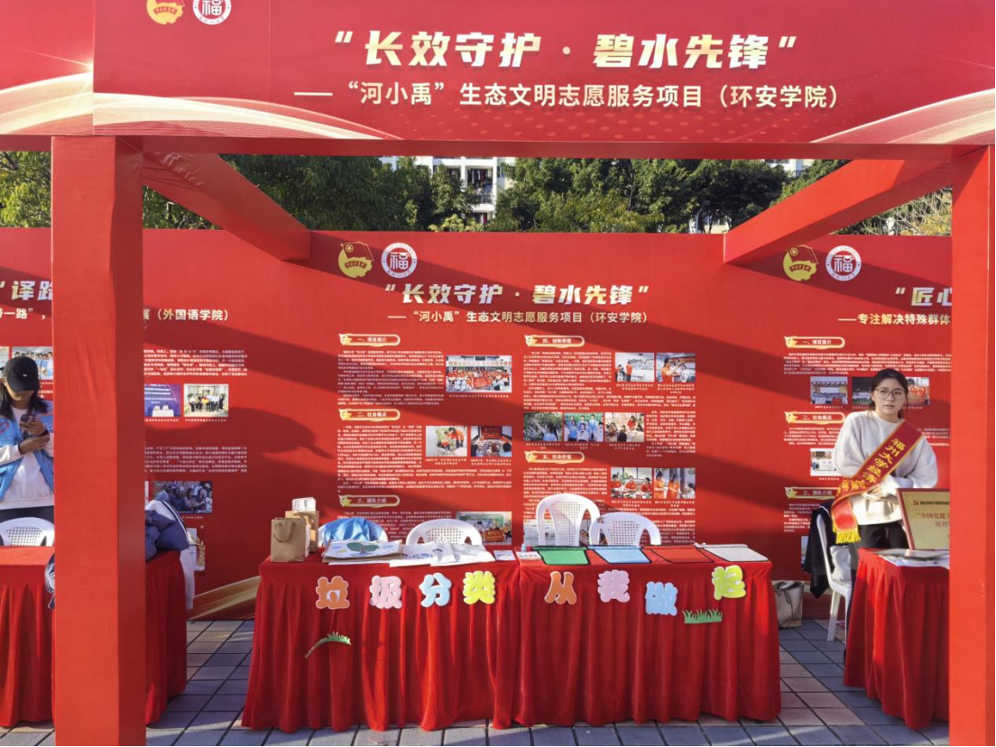 活动现场暖意浓浓,“河小禹”摊位前,背景板清晰呈现服务队的实践历程,每一段故事都藏着护水初心;小朋友手绘的节水帆布袋里满含绿色期许。垃圾分类趣味游戏,以轻松互动让同学们快速掌握分类知识。