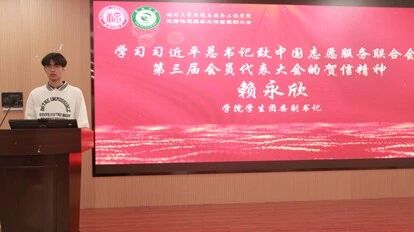 学院学生团委副书记赖永欣分享学习感悟,带领大家深入领会习近平总书记致中国志愿服务联合会第三届会员代表大会的贺信精神,明确志愿服务作为社会文明进步重要标志的深刻内涵,激励青年学子在服务国家战略、民生需求中传递真善美、传播正能量。
