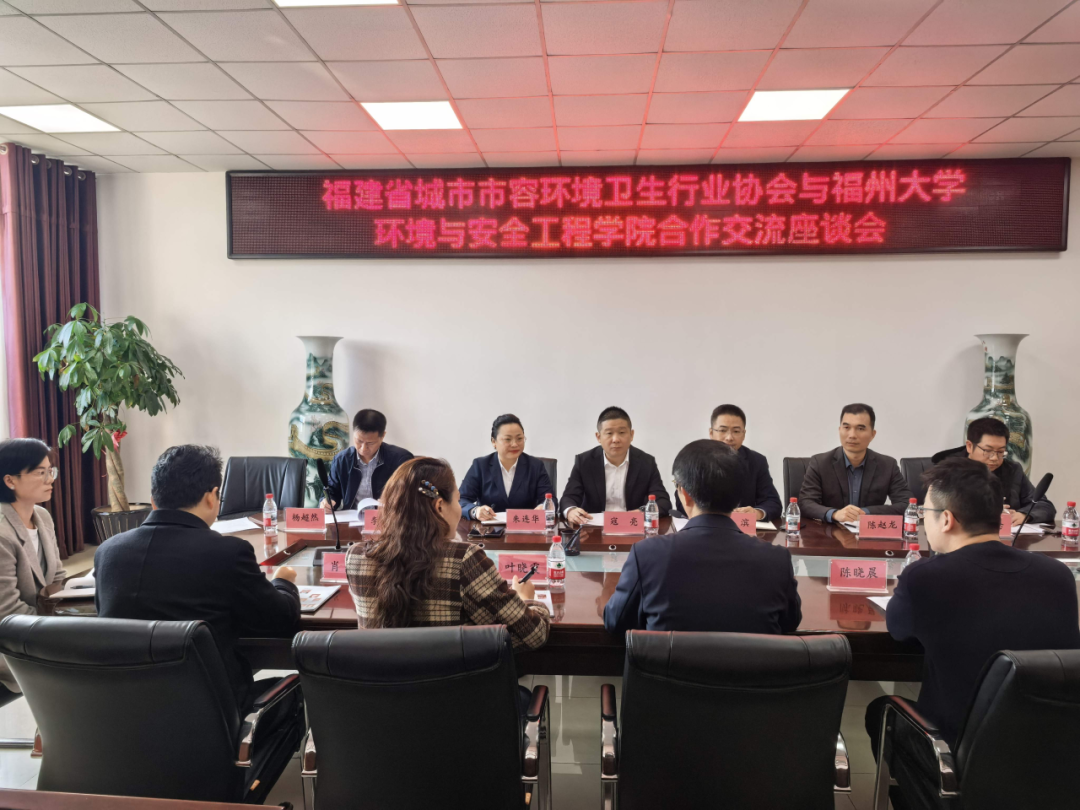 为深化高校与行业协同,推动环境卫生领域产学研深度融合,2025 年 12 月 11 日上午,福州大学环境与安全工程学院与福建省城市市容环境卫生行业协会合作交流座谈会,在福州大学旗山校区嘉锡楼 314 会议室圆满召开。双方围绕人才共育、技术攻关、实践基地建设等核心议题深入研讨,共绘环境卫生事业高质量发展蓝图。