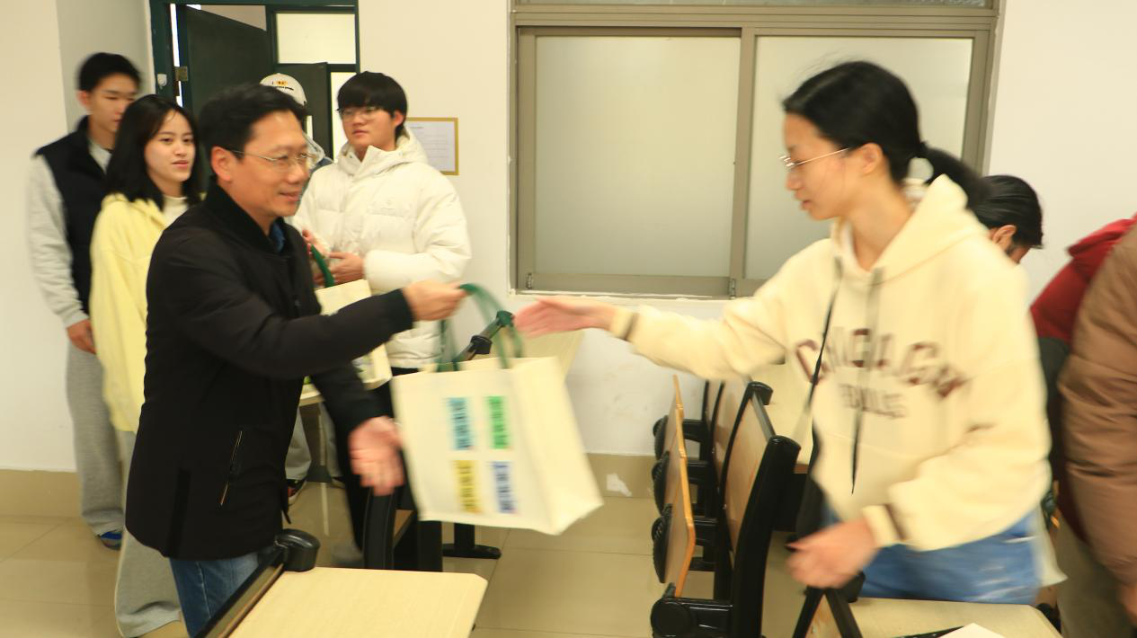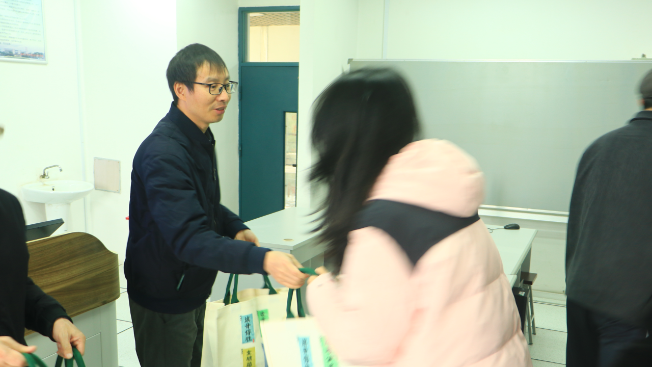 2026年考研最后冲刺阶段如约而至。为关心我院2022级考研学子近况,鼓励其积极备考、舒缓压力,2025年12月15日,我院党委刘朝晖副书记、阳富强副院长及毕业班辅导员李蓉蓉一行前往教学楼、实验楼关心慰问我院考研学子,并为同学们送上学院为每一位考研同学进行专人定制的考研加油礼包。
