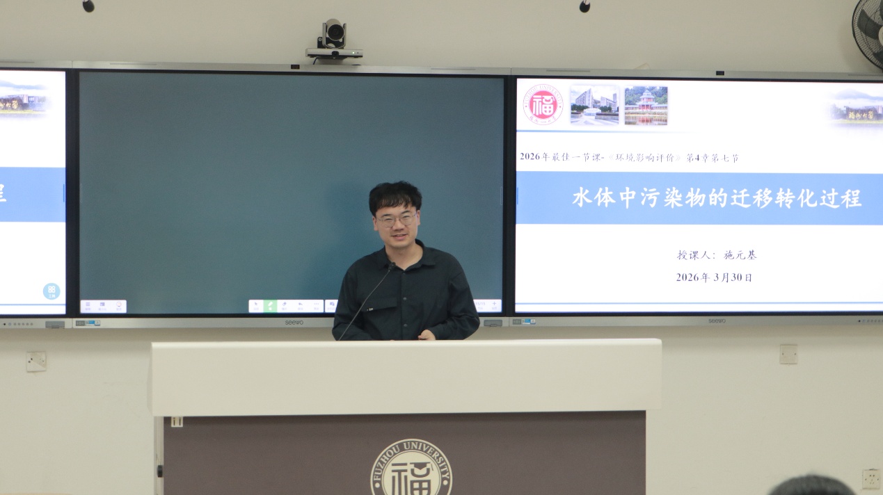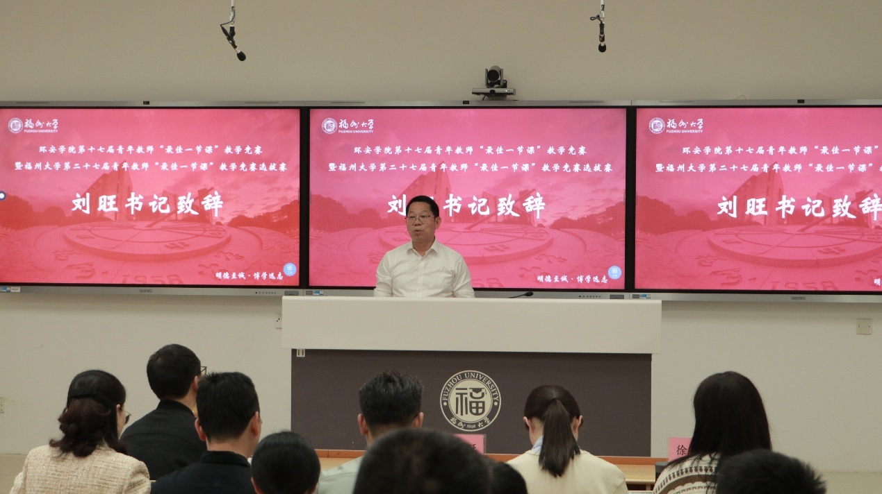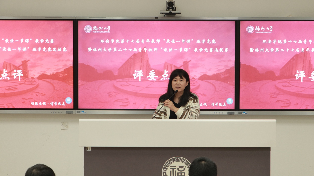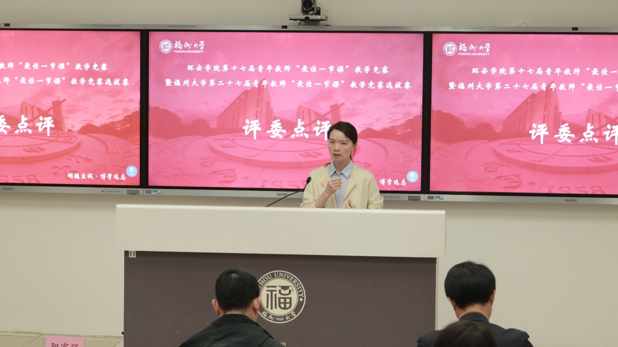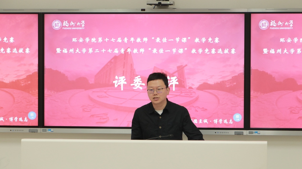 春和景明,教泽绵长。为深入贯彻立德树人根本任务,搭建青年教师教学交流平台,锤炼教学基本功,提升课堂教学质量,3月30日下午,环境与安全工程学院第十七届青年教师“最佳一节课”教学竞赛暨福州大学第二十七届青年教师“最佳一节课”竞赛选拔赛在旗山校区西2-101教室顺利举行。环境与安全工程学院党委书记刘旺研究员、执行院长徐开钦教授、副院长阳富强教授、环境与安全工程学院工会主席潘文斌教授、紫金地质与矿业学院副院长胡建华教授、经济与管理学院副院长梁红艳教授、化工学院孙志新副教授、材料科学与工程学院吴啸副教授、环境与安全工程学院温小乐副教授、院长助理邹亚锋校聘教授、13名参赛教师以及学院部分师生参与本次活动。