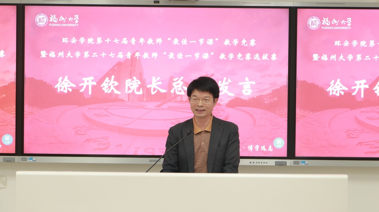 活动最后,徐开钦院长作总结发言。他对全体参赛教师的精心准备和精彩表现给予充分肯定,对评委专家的专业指导和工作人员的辛勤付出表示感谢。他强调,课堂是人才培养的主阵地,教学能力是教师的立身之本。希望全体青年教师以本次竞赛为新起点,把竞赛中的收获转化为日常教学的动力,持续深耕教学、潜心育人,不断探索教学新模式、新方法,推动学院教育教学质量再上新台阶;同时,学院将持续搭建更多教学交流平台,完善青年教师培养体系,助力青年教师快速成长,为培养担当民族复兴大任的高素质环境与安全领域专业人才、推动学院教育事业高质量发展贡献力量。