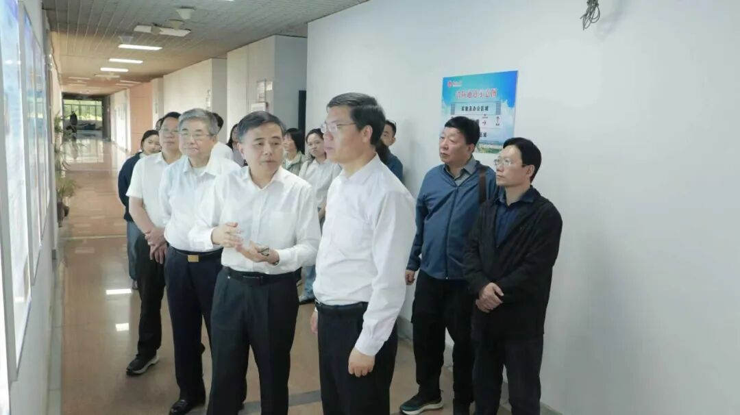徐涵秋教授带领师生参观宣传栏,并向张亚雷副校长、陈少平副主任介绍我校地理遥感学科从创建到如今我校地球科学入选ESI前1%学科的发展历程。