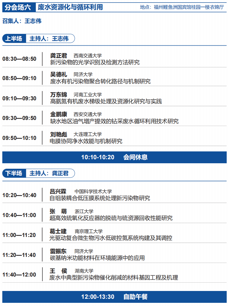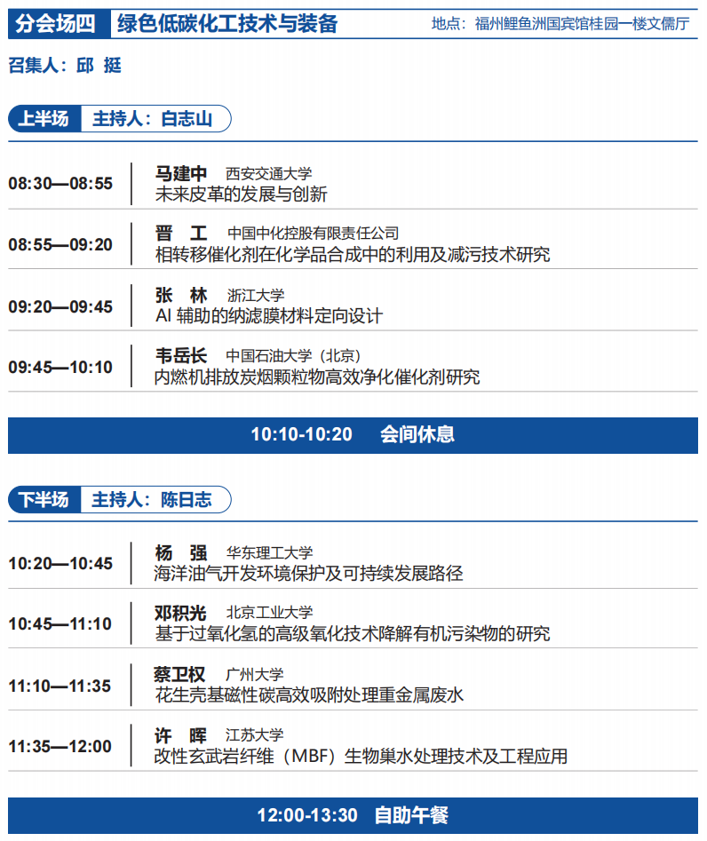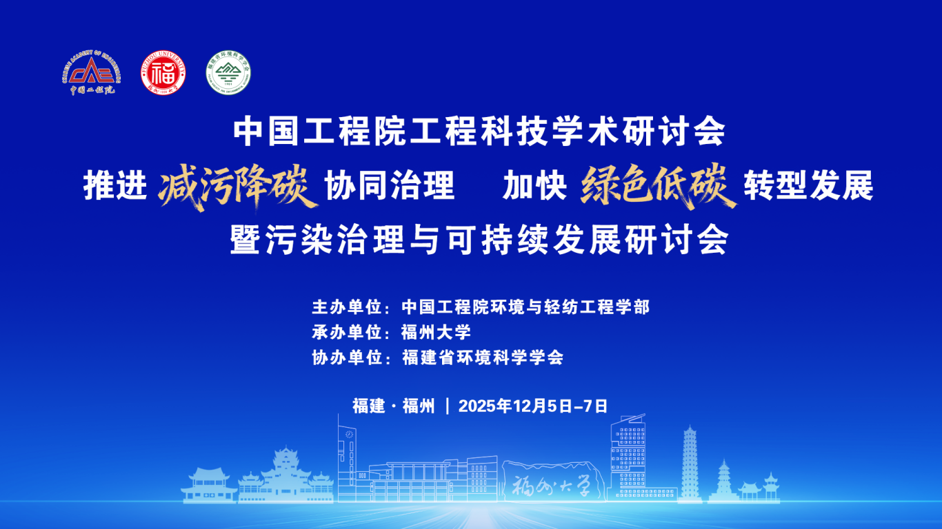习近平总书记强调,要协同推进降碳、减污、扩绿、增长,要求坚定不移走生态优先、绿色发展之路。为贯彻落实《减污降碳协同增效实施方案》《关于加快经济社会发展全面绿色转型的意见》,必须将绿色发展理念深度融入经济社会发展的全过程和各领域,以体制机制改革创新和科学技术创新为根本动力,统筹产业结构调整、污染治理、生态保护、应对气候变化,强化法治保障和政策支撑,加快形成节约资源和保护环境的空间格局、产业结构、生产方式、生活方式,努力建设人与自然和谐共生的美丽中国。遵照工程院2025年工程科技学术研讨会任务安排,中国工程院环境与轻纺工程学部和福州大学定于2025年12月5-7日在福建福州召开“推进减污降碳协同治理 加快绿色低碳转型发展暨污染治理与可持续发展研讨会”。大会将围绕绿色可持续发展的环境与化工、污染控制化学与土壤复合污染修复、城市更新场地污染绿色治理、绿色低碳化工技术与装备、农林废弃物高值转化利用、废水资源化与循环利用、废水低碳处理与能源资源化系统、固废资源化与微生物电化学技术等关键议题,设置1个大会会场和8个分会场,开展深入交流与讨论,激发更多创新思维,促进跨学科合作,推动形成一批具有自主知识产权的核心技术和产品,为推进减污降碳协同治理,加快绿色低碳转型发展提供强有力的支撑,全面推进美丽中国建设。