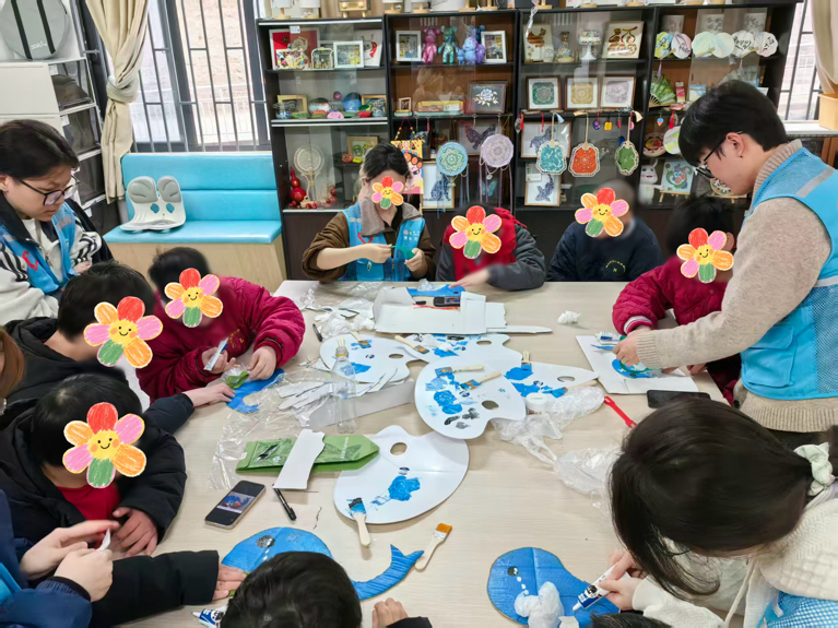 随后的手工制作环节,志愿者们带领院民以废旧材料为原料创意拼接海洋生物造型。在动手实践中,大家不仅深化了对海洋保护的理解,更在协作交流中传递着绿色、环保的理念。