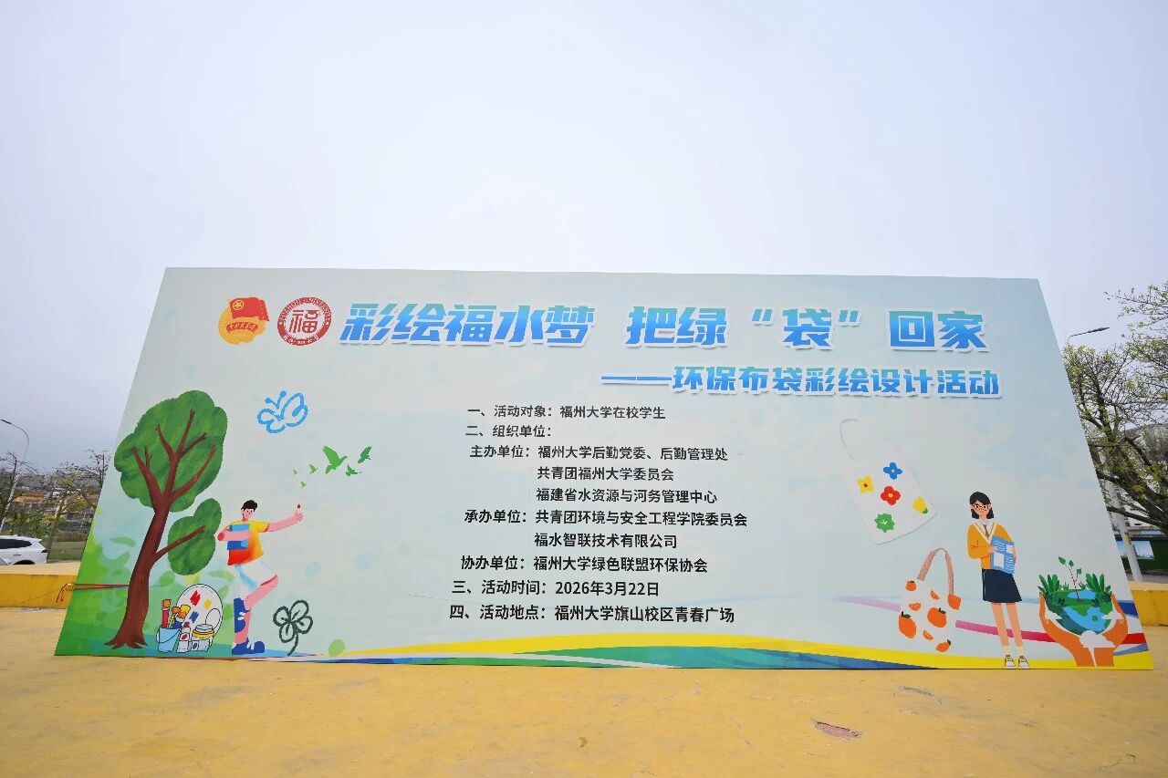 2026年3月22日,是第三十四届“世界水日”暨第三十九届“中国水周”。 为深入贯彻习近平生态文明思想,倡导广大青年朋友践行爱水、护水、节水的绿色生活理念,福州大学举办“彩绘福水梦,把绿‘袋’回家”环保布袋彩绘设计活动。
