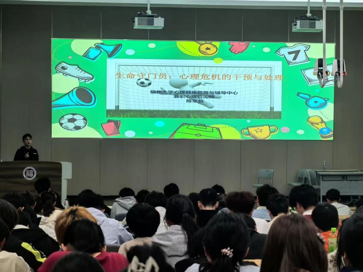 随着时代的高速发展与生活节奏的加快,对高校而言,心理健康已然成为守护学生们青春成长的重要基石。为织密校园心理安全防护网,做到“早发现、早预防、早干预”,维护学生生命安全和校园安全稳定,3月23日晚,环境与安全工程学院于铜盘校区科报厅B开展“生命守门员”专题培训,邀请福州大学心理健康教育与辅导中心兼职心理咨询师陈章毅老师担任主讲,学院主要学生干部、宿舍长到场参与。
