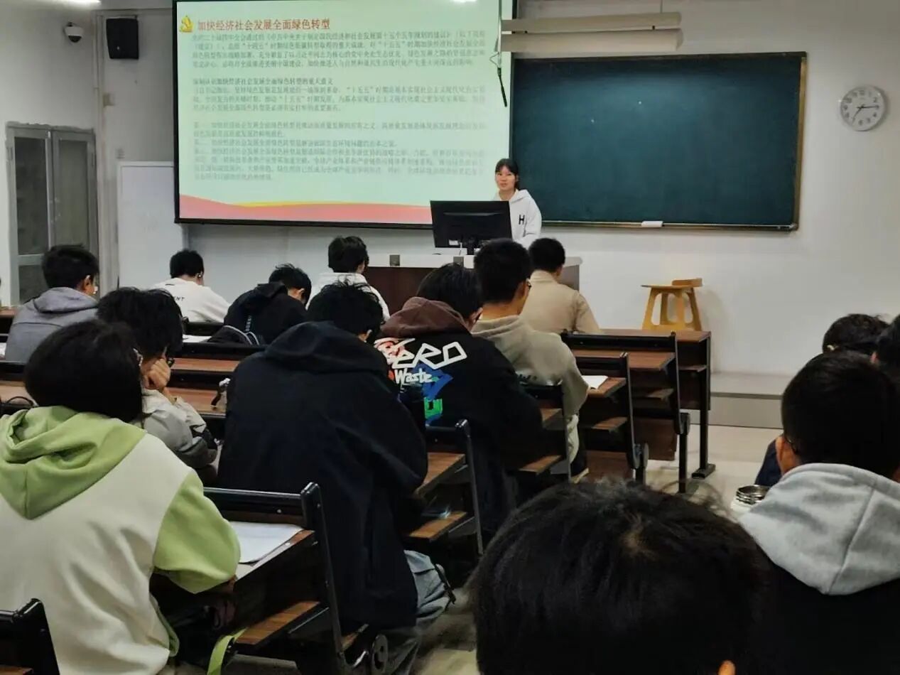 2025年11月20日晚,支部在教室组织专题学习会,集中学习了党的二十届四中全会精神,过程中强调“十五五”规划中的“加快经济社会发展全面绿色转型”,探讨了全会精神对环境工程专业的影响,从而激励团员青年将个人发展融入国家发展大局,明确自身在强国建设、民族复兴伟业中的责任与担当。学习会的尾声,同学们写下心得体会,交出了自己的青春答卷。
